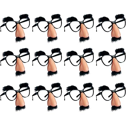 Amazon Com Juvale 12 Pack Funny Nose Disguise Glasses With Mustache Birthday Party Favors Halloween Costume Accessories Toys Games